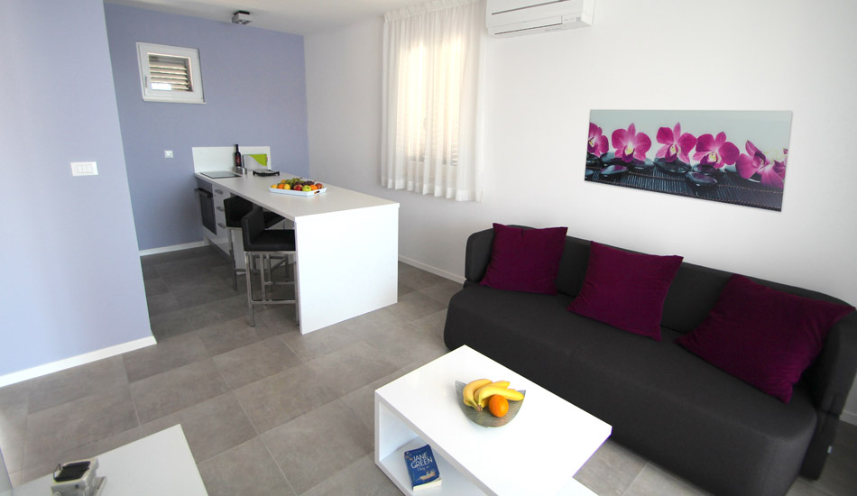 Gosti koji odaberu Apartman Exclusive uživati će u pogledima na prekrasno Jadransko more. U blizini će naći šljunčanu plažu s palmama i mediteranskim biljem koje ih mami da se prepuste uživanju.